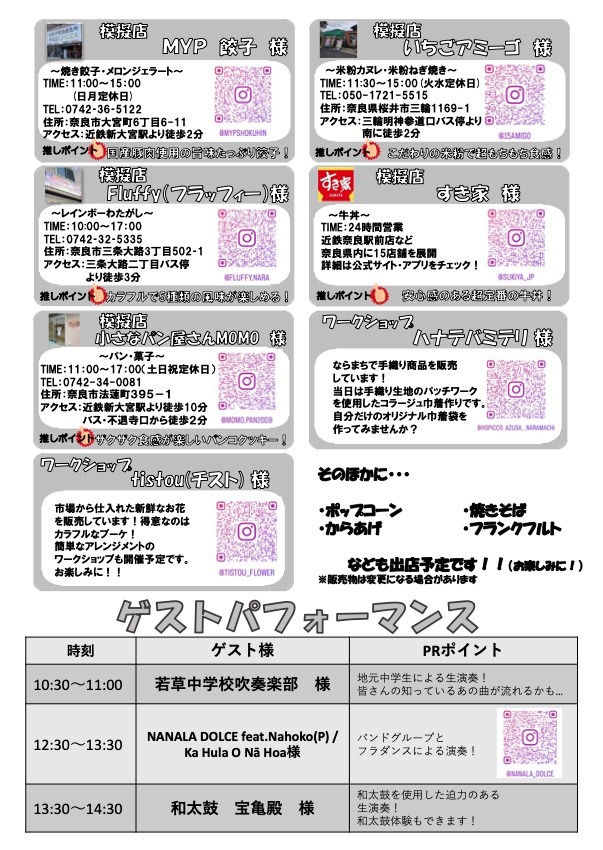 食べ物の他、物販やワークショップなど、いろんなお店が出店される予定❗️