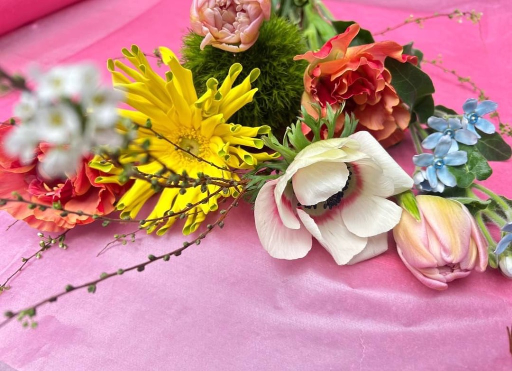 (写真はアレンジメントに使うお花のイメージです🌹春の花と初夏の花を組み合わせて♪)