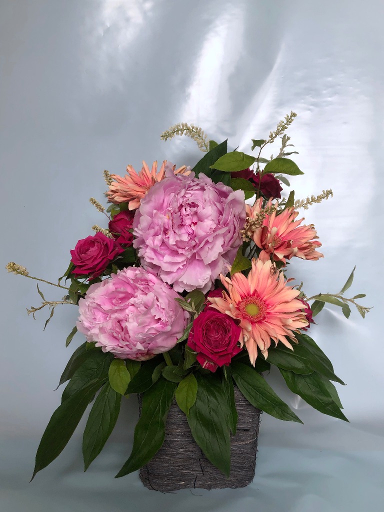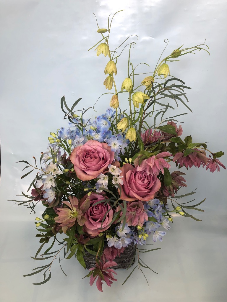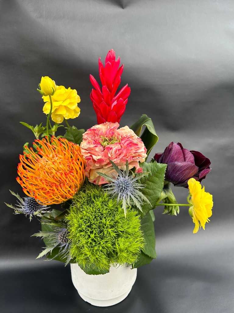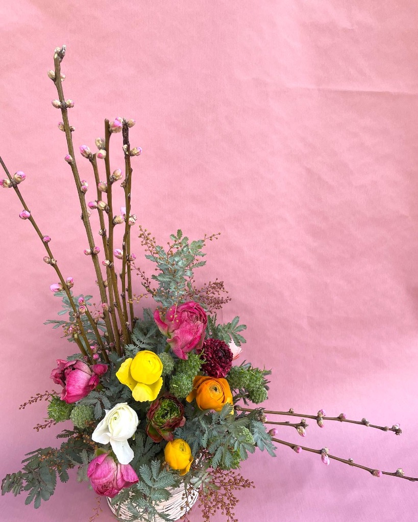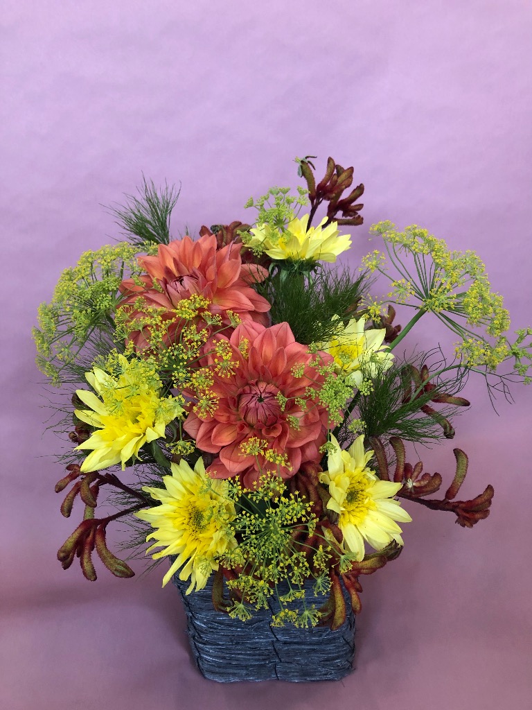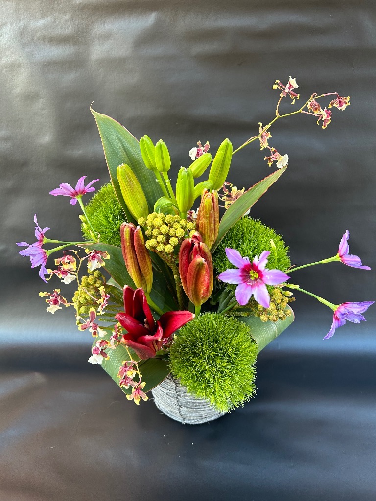 お花を吸水性のスポンジに挿してお作りするものです。花束と違い、花器をご用意していただく必要がなく、そのまま飾っていただけます!