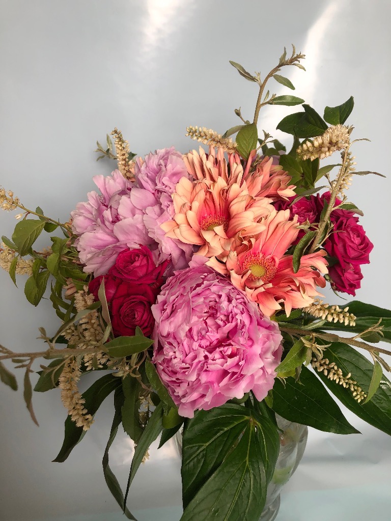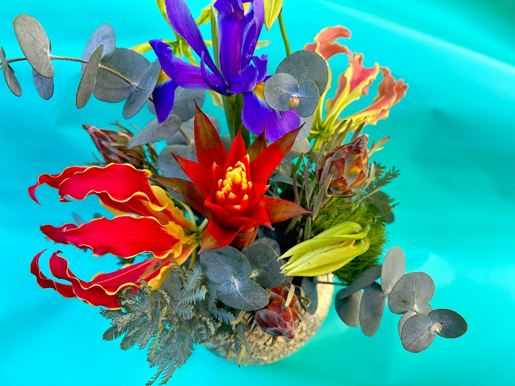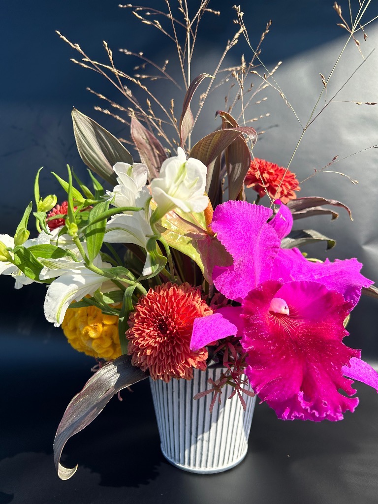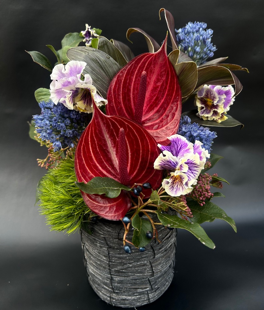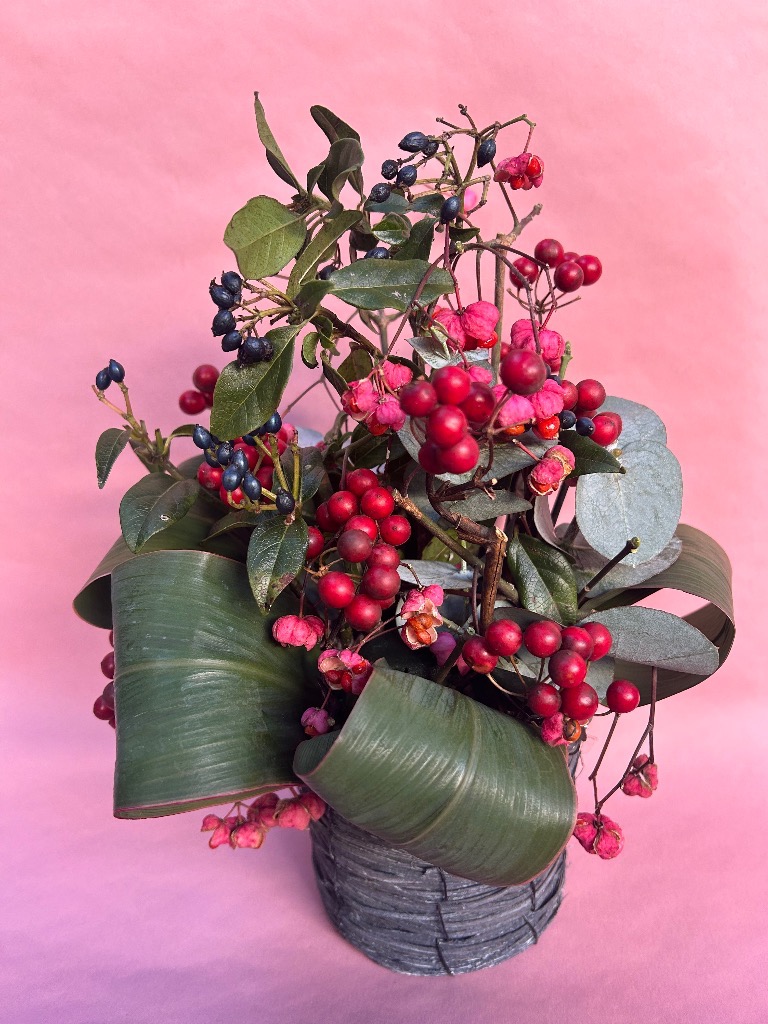 お花を吸水性のスポンジに挿してお作りするものです。花束と違い、花器をご用意していただく必要がなく、そのまま飾っていただけます!